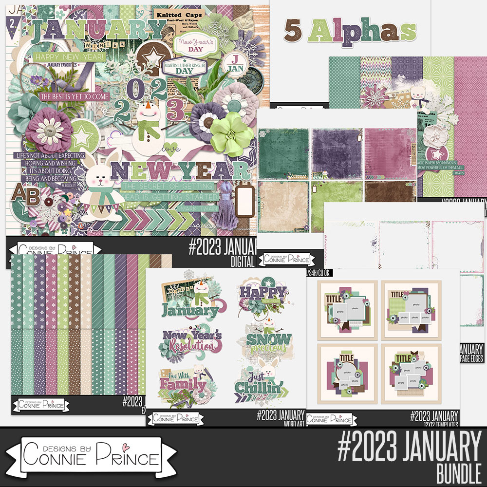 I like to see kits in action before I purchase them so here are a few layouts from Connie's Creative Team made with #2023 January to jump start your weekend inspiration!